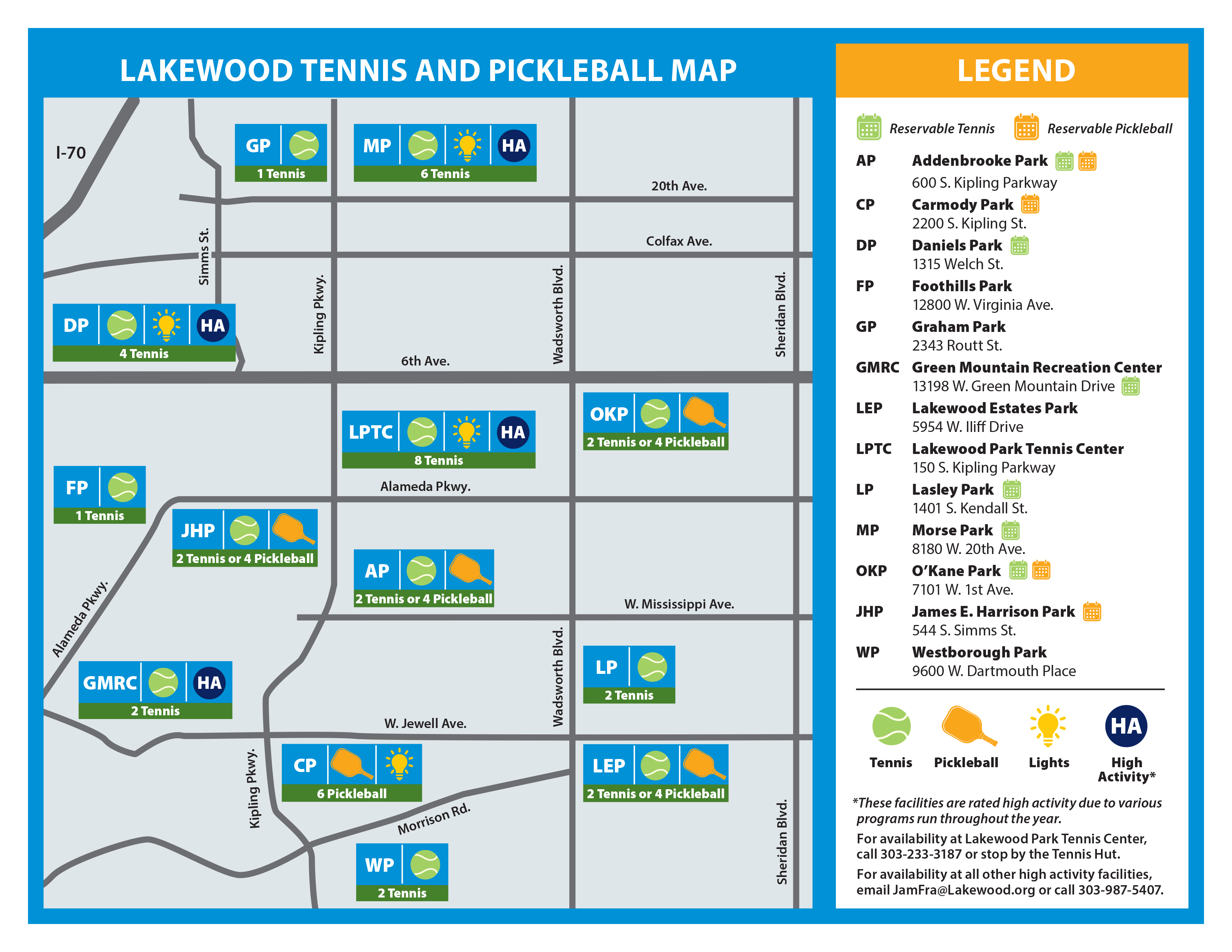 Pickleball is a fun sport that combines many elements of tennis, badminton and ping-pong. It can be played both indoors or outdoors on a badminton sized court and a slightly modified tennis net. Pickleball participants play with a paddle and a plastic ball with holes. It can be played as a doubles or singles game. Lakewood offers outdoor and indoor courts.
